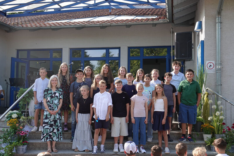 Klasse 5e mit Klassenlehrerin Melanie Kurz.