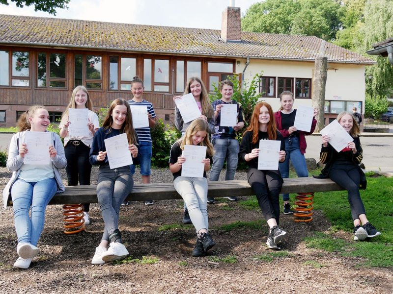 Schüler der A-Gruppe der 6a sind mit den Zeugnissen zufrieden. Jetzt geht es in die Sommerferien.