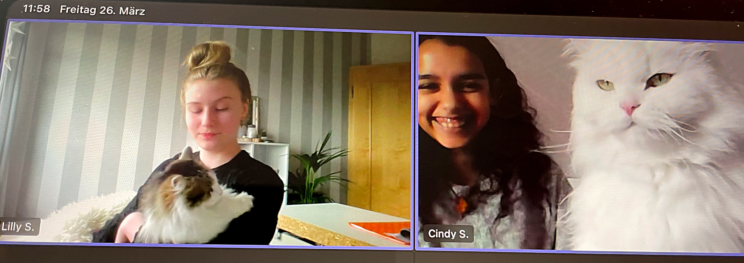 Luna (1. v. l.) udn Sheba (r. außen) beim Homeschooling