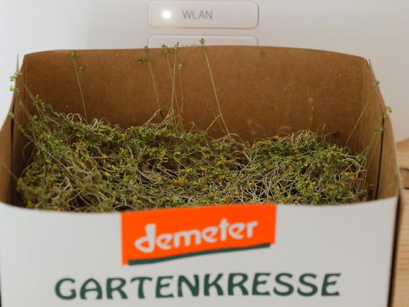 Schüler aus Dänemark haben in einem Versuch Kressepflanzen mit und ohne WLAN-Strahlung beobachtet. Die „WLAN-KRESSE“ ist verkümmert. Singuläre Versuche der Art sind emotional und spektakulär, aber leider wissenschaftlich nicht haltbar. Die Kresse könnte auch aus anderen – unbekannten – Gründen verkümmert sein. Symbolbild: Andreas Bubrowski