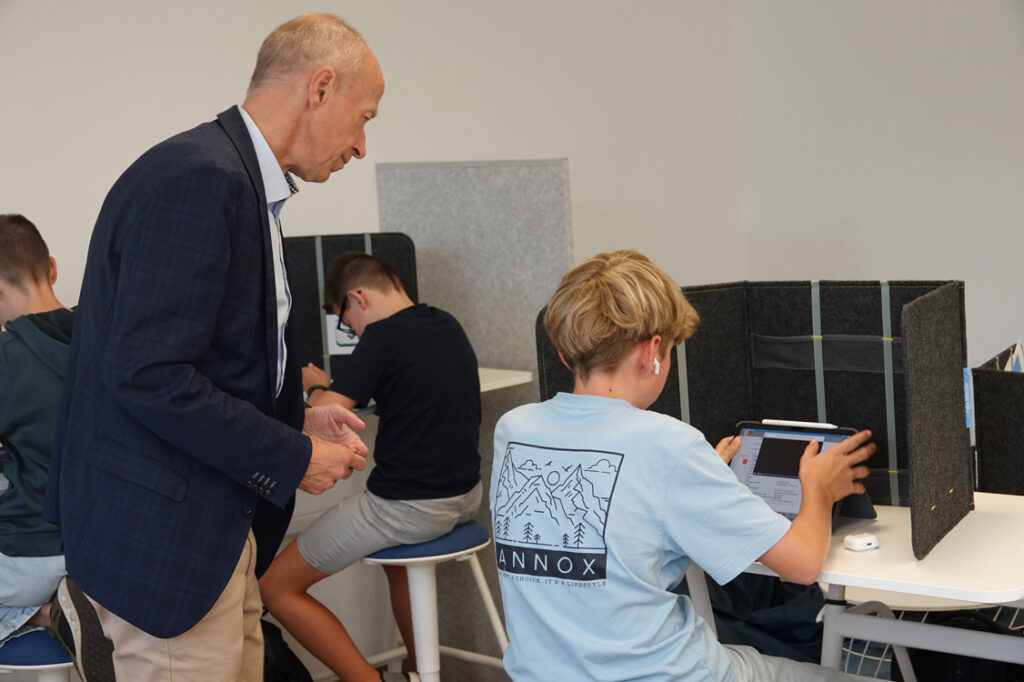 Hier kam er mit Kindern und Lehrkräften ins Gespräch – und spürte direkt die Begeisterung, die unser neues Konzept bereits entfacht hat. „Es ist toll zu sehen, wie selbstständig und motiviert die Schülerinnen und Schüler hier arbeiten“, fasste er seine Eindrücke zusammen.