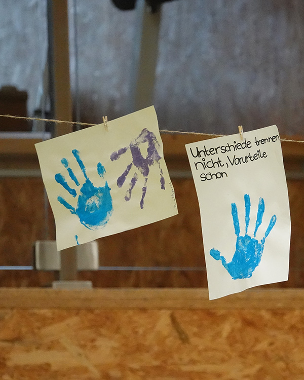 In der anschließenden Besinnung griff Schulpfarrerin Kerstin Palisaar gemeinsam mit mehreren Schülerinnen und Schülern bewusst Alltagsbeispiele auf, etwa unterschiedliche Bezeichnungen rund um den Schokokuss und deren problematische, diskriminierende Ursprünge. Auf schülernahe Weise wurde deutlich, wie Sprache wirkt – und wie wichtig ein bewusster, respektvoller Umgang mit Worten ist.