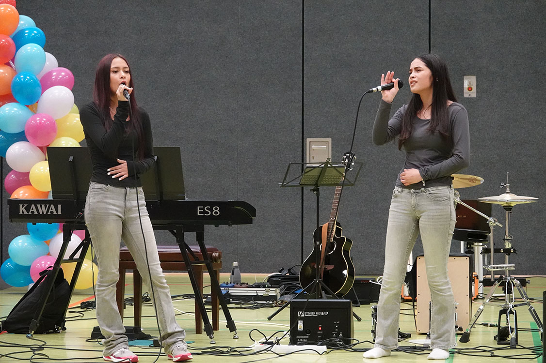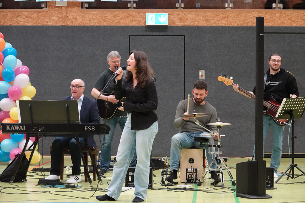 Ein emotionaler Höhepunkt war der musikalische Beitrag von Marie Böth, die das Lied „We are the world, we are the children“ sang. Begleitet wurde sie am Klavier von Christoph Heimbucher sowie weiteren Lehrkräften. Dieser Moment berührte viele Anwesende zutiefst – nicht wenige hatten Tränen in den Augen.