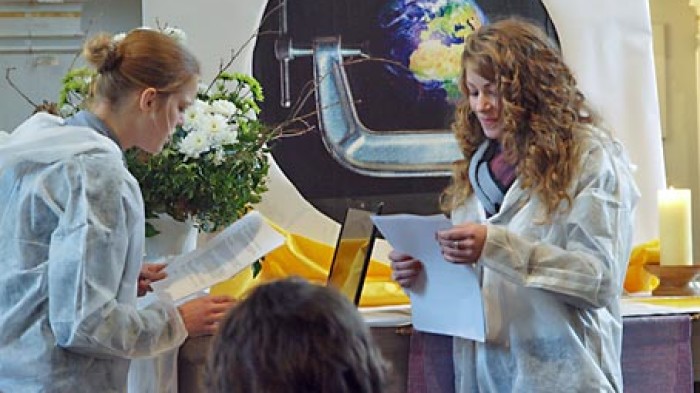Mit anderen Religionslehrern und Schülern der Jahrgangsstufen neun und 13 hatte er kleine Rollenspiele, auf Jugendliche zugeschnittene Fürbitten und sogar einen Rap (Wann reißt der Himmel auf?) vorbereitet, und natürlich kam auch der gemeinsame Gesang mit Gitarrenbegleitung nicht zu kurz. Somebody’s knocking at your door summte so mancher Internatsschüler auf dem Nachhauseweg – die Botschaft des Tages hatte ihn ganz offensichtlich erreicht. Die Kollekte wird in diesem Jahr für ein Schulprojekt verwendet. Geplant ist ein Haus der Stille, in dem jeder zu sich selbst kommen kann.