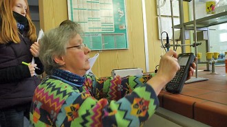 Zwecks der Demonstration hat Chemielehrerin Eva Friedrich eine Reihe von drei Versuchen für die Redakteure der Redaktion aufgebaut. Für unterschiedliche Anforderungen können auch die Sensoren ausgetauscht werden; so sind die Geräte des US-Technologieunternehmens Texas Instruments vielfach einsetzbar. Die Versuchsreihe begann mit einem Versuch zur Messung der Helligkeit und Temperatur verschiedener Bunsenbrennerflammen. Hierzu wurden an ein Gerät ein Lichtsensor und an ein anderes ein spezielles Hochtemperaturthermometer angeschlossen. Sogleich war die Ergebniskurve ablesbar.