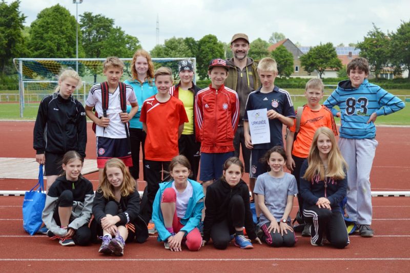 Leichtathletik-AG (2014/15). Vorn, 2. v. l., die Verfasserin. Foto: privat