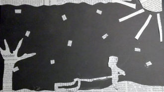 Nun habe ich mal wieder eine sehr kreative Klasse entdeckt. Die 5b von Miriam Jüngel erinnert mich in Sachen Kunst sehr an die 7a von Andreas Bubrowski, als sie noch die „Kleinen“ waren. Die Aufgabe: Versuche kreative Lösungen zu finden, eine Schneelandschaft darzustellen. Zuvor hatten die Kinder Übungen zu verschiedenen Malmaterialien, wie Farbkasten mit Borsten- und Haarpinsel, sowie Buntstiften. Sie sollten auch mit verschiedenfarbigen Untergründen experimentieren. So wie es aussieht, hatten die Schüler einigen Spaß am Gestalten. BIRGIT REIMER