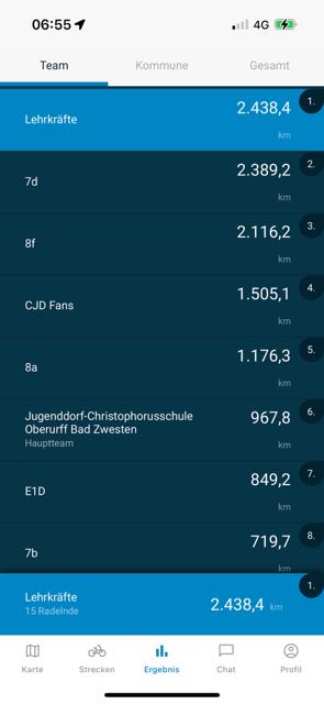 Der Fahrradparkplatz vor der Cafeteria ist aktuell sehr gut gefüllt. Grund ist sicher unter anderem der aktuelle Wettbewerb Schulradeln, an dem sowohl Klassen, als auch Lehrkräfte teilnehmen. In den kommenden Wochen könnt ihr auf dieser Seite das tagesaktuelle Ranking finden.