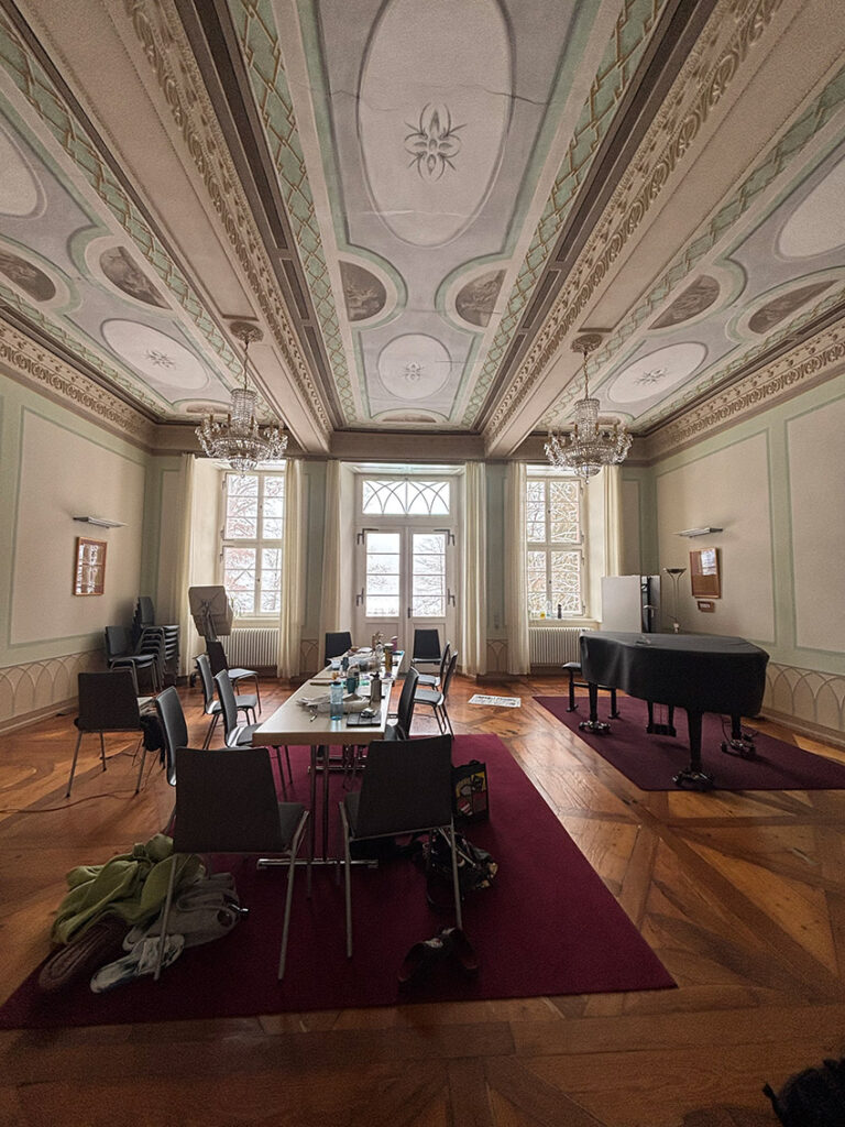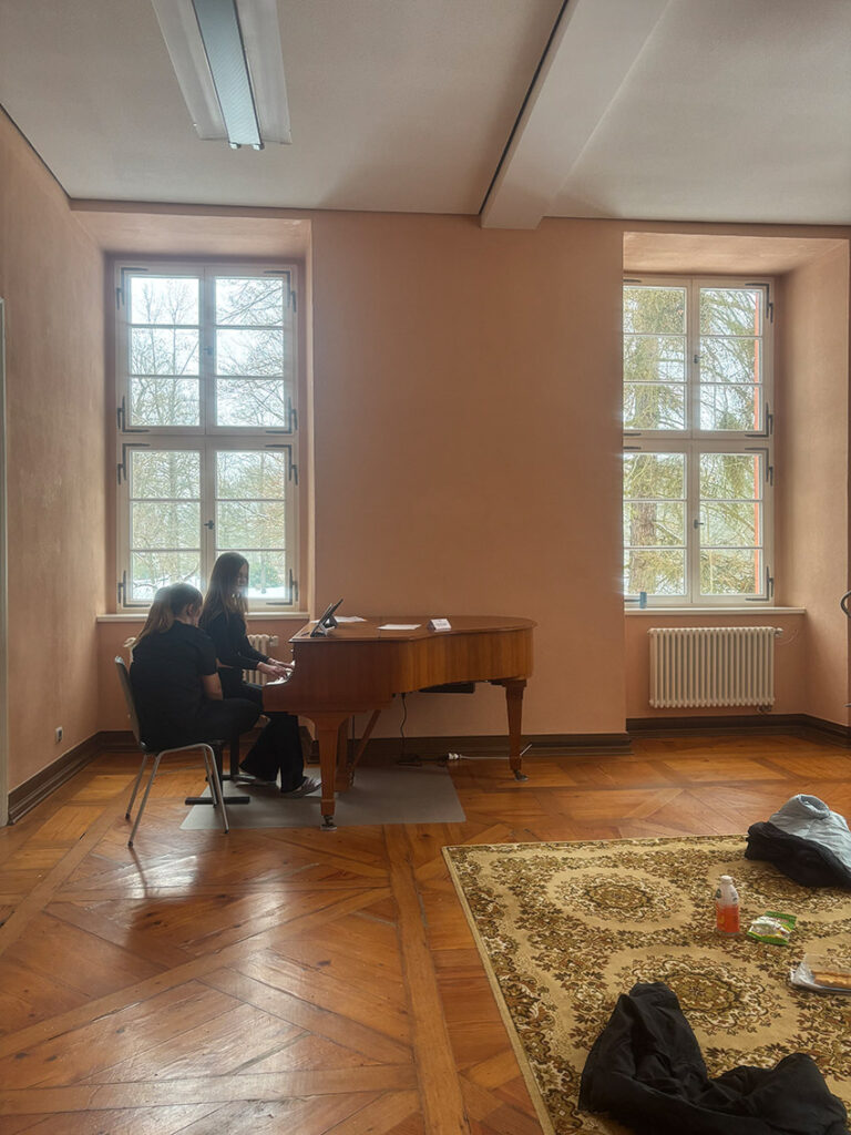 Der Tagesablauf war klar strukturiert: Vormittags wurde konzentriert gearbeitet, nach der Mittagspause ging es weiter mit Proben, Gestaltungen und dem gegenseitigen Besuchen im Sinne der Inspiration und Weiterentwicklung der Projekte. Abends wurden die Zwischenstände präsentiert und über die Fortschritte gestaunt. Danach blieb Zeit für Austausch, Spiele, Gespräche und kreative Ideen, die oft noch bis spät in die Nacht weitergesponnen wurden.