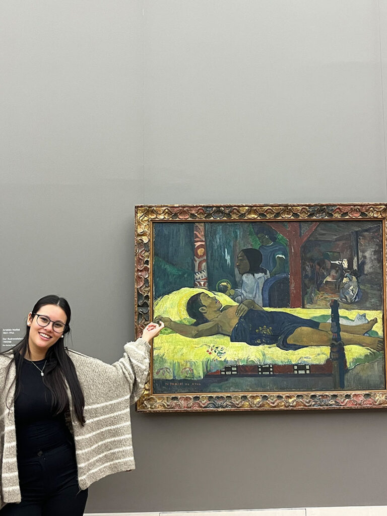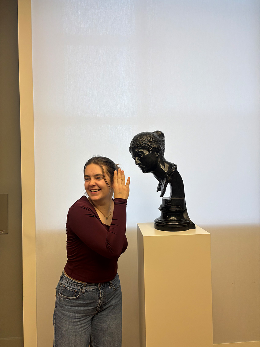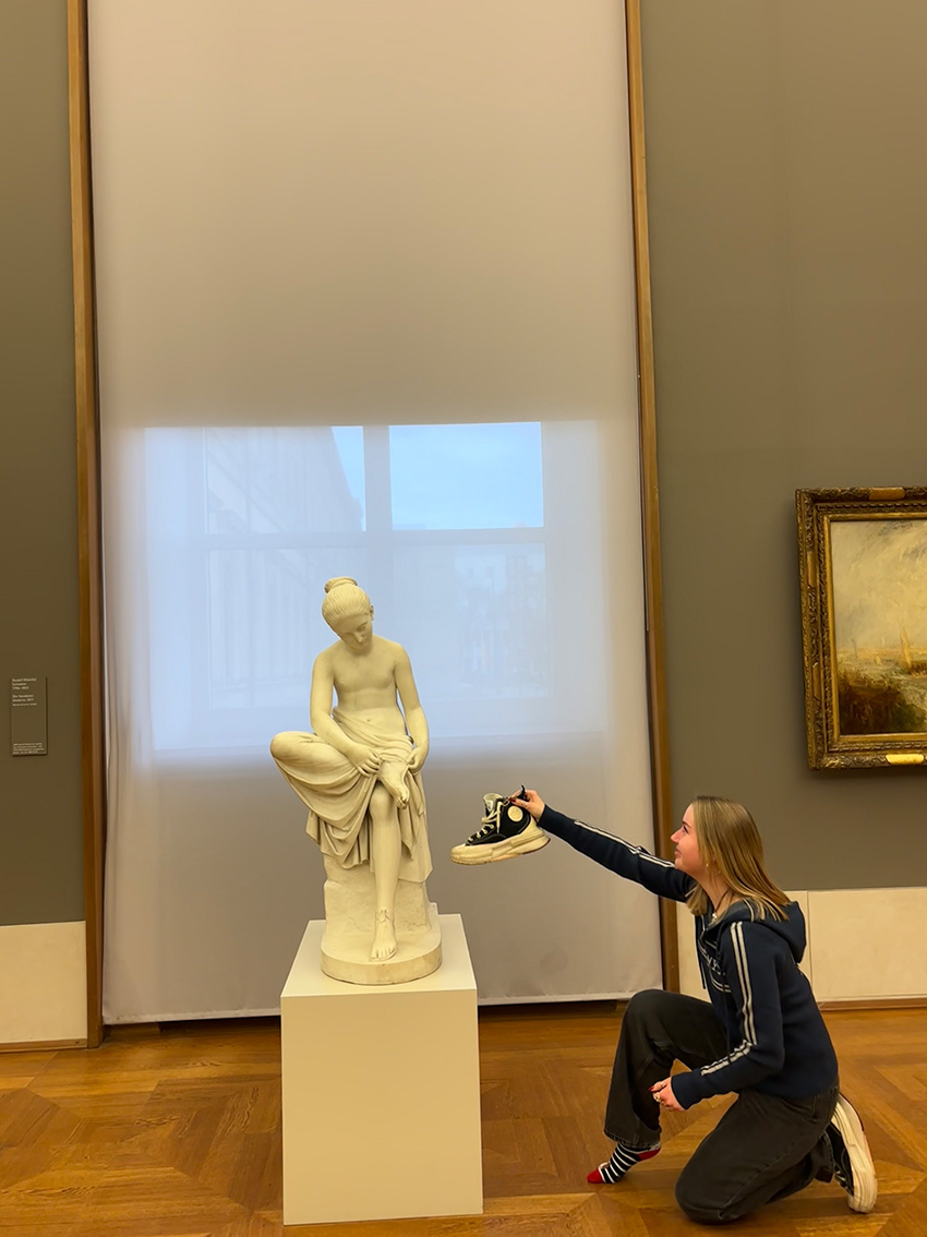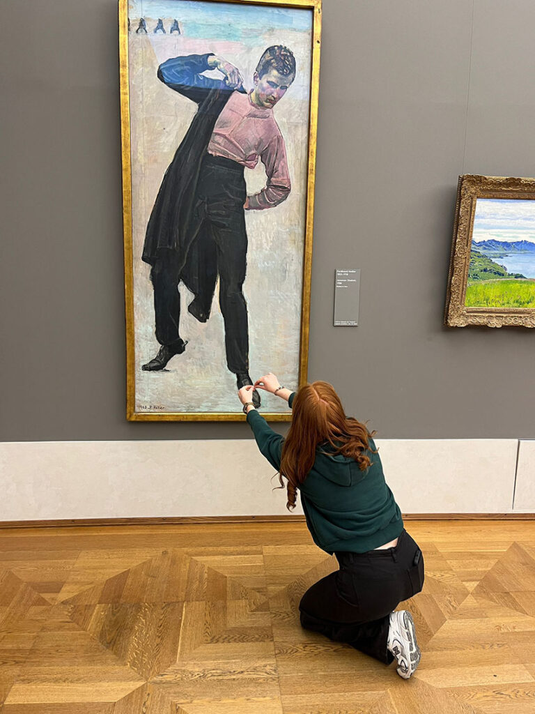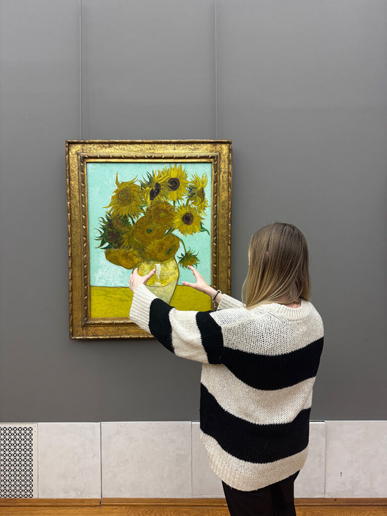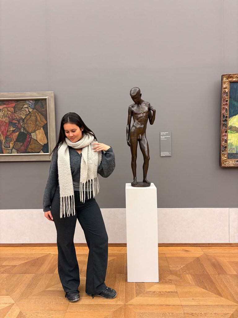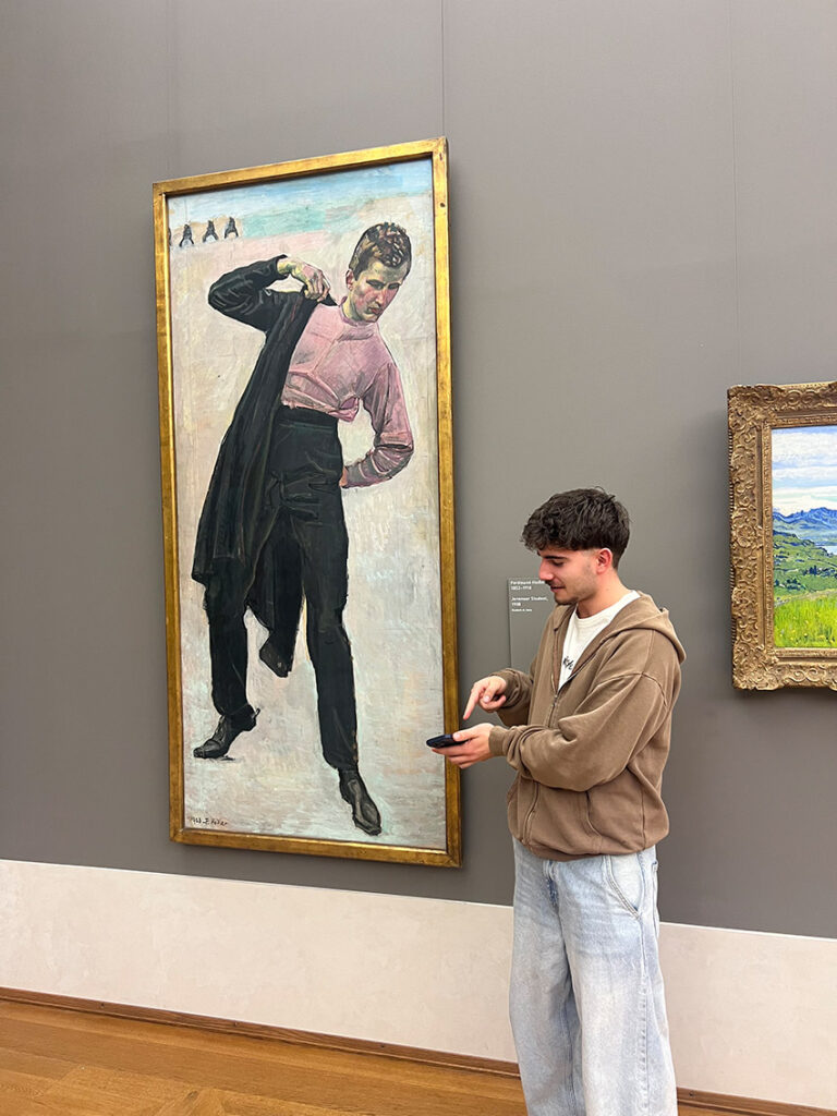Der Kunst-Leistungskurs besuchte am ersten Tag die Alte Pinakothek. Im Mittelpunkt standen Werke aus dem Mittelalter, der Renaissance und dem Barock. Anhand ausgewählter Gemälde und Plastiken beschäftigten sich die Schülerinnen und Schüler mit religiöser Bildsprache, Kompositionsformen und der Entwicklung der Perspektive. Besonders interessant war zudem, dass aufgrund der Renovierung der Neuen Pinakothek auch impressionistische Schmuckstücke dort zu sehen waren. Dadurch ergab sich ein spannender Vergleich zwischen strengeren Bildkonzepten früherer Epochen und dem freieren Umgang mit Licht und Farbe im Impressionismus.
