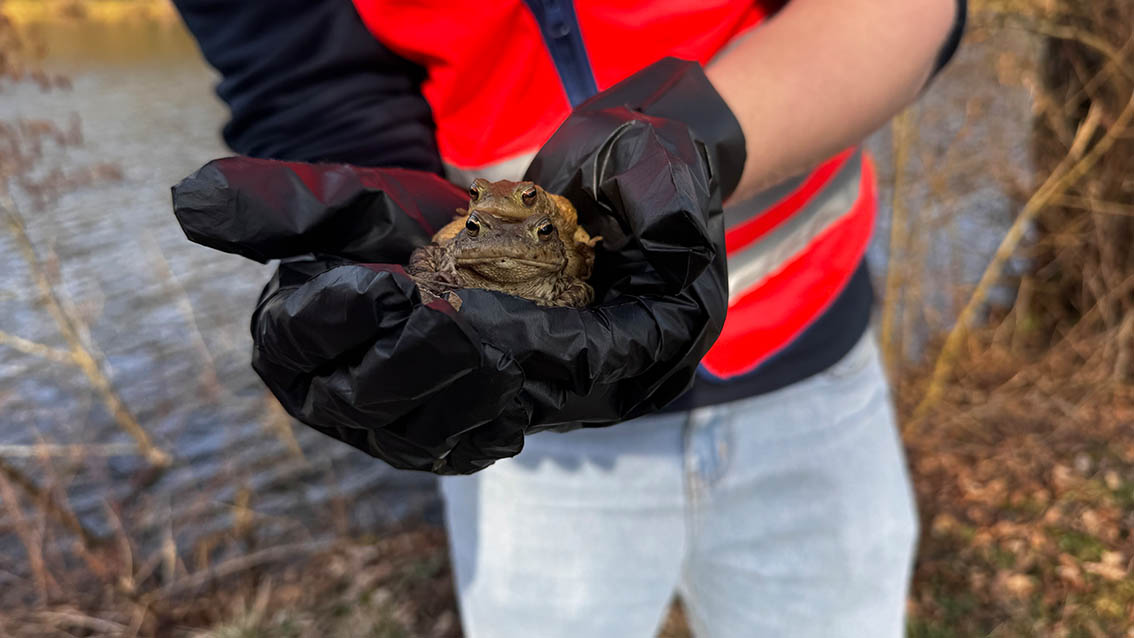 heimischen Amphibien während der Wanderungszeit. Da die Straße zum Oberurffer See für viele Kröten zur tödlichen Falle werden kann, haben wir die Ärmel hochgekrempelt und gehandelt.